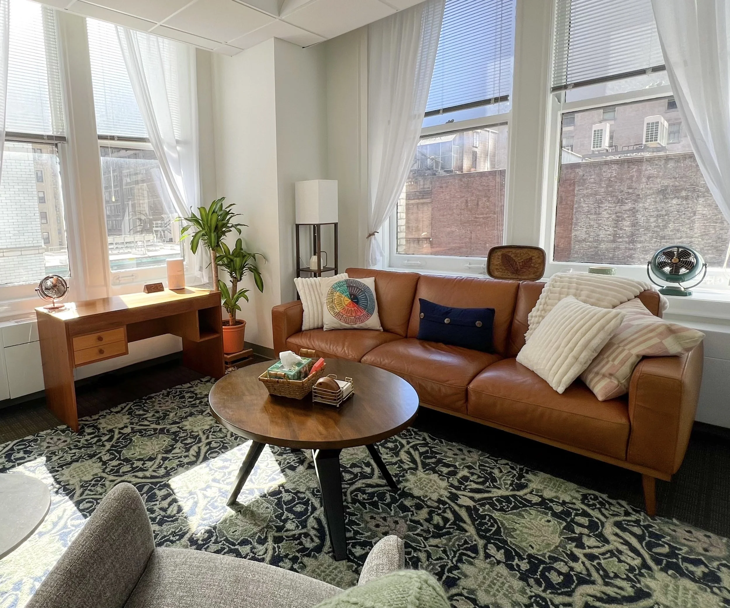 Private, comfortable office in Center City, Philadelphia. Soundproof space where you can speak freely. Consistent weekly sessions at the same time, same place. Wheelchair accessible & ADA compliant.